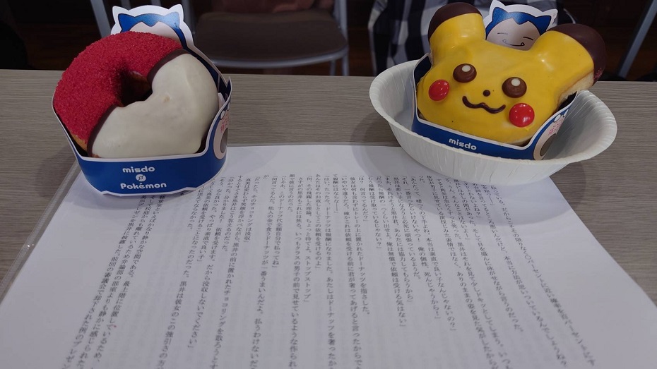 今回も4月の作品と同様に小説の内容に合わせてドーナツを持参しました。